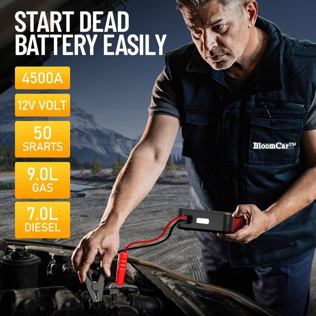ULTIMATE CAR EMERGENCY TOOL: JUMP STARTER, AIR PUMP, POWER BANK & LED LIGHT, SOS LIGHT.